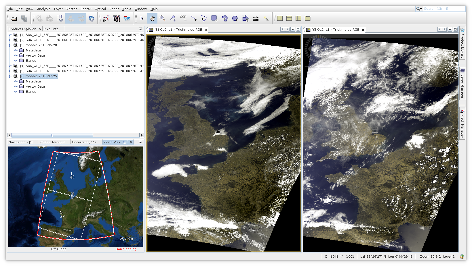 This caught my attention, so I thought I’d try to download the source satellite data for the image that went through the newspapers in July. Maybe later I’ll devote a separate post to a detailed description of how I downloaded the data and tried to process it (i.e., at least display it somehow). However, it quickly became apparent that this isn’t exactly straightforward. Nevertheless, it’s nice that this data is available this way, including documentation and various tutorials, and that the software ESA develops for processing this data is licensed under GPLv3.